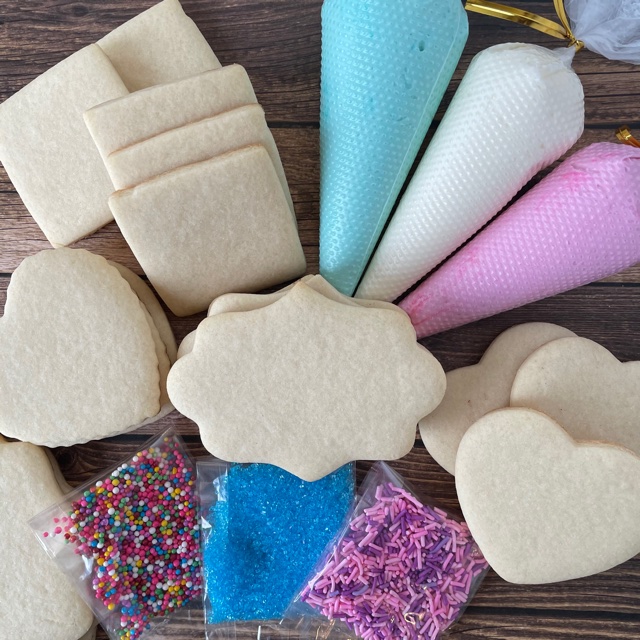 Our Valentines sugar cookie kit that includes 2 dozen cookies, three bags of icing, and three bags of sprinkles (sprinkles may vary).