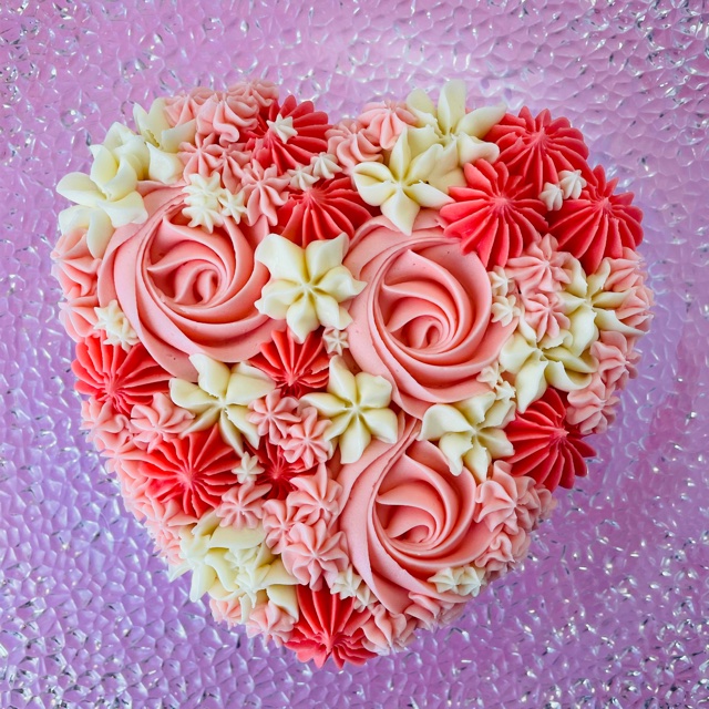 A pink and white floral mix topping our 6″ heart shaped cake. Perfect for the special somebody in your life!